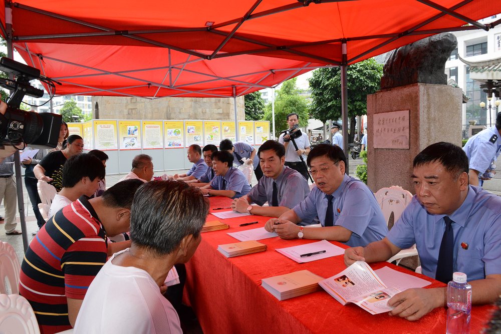 24日上午,市检察院联合潮阳区检察院在潮阳文光塔广场设点宣传,接受群众举报申诉和法律咨询。