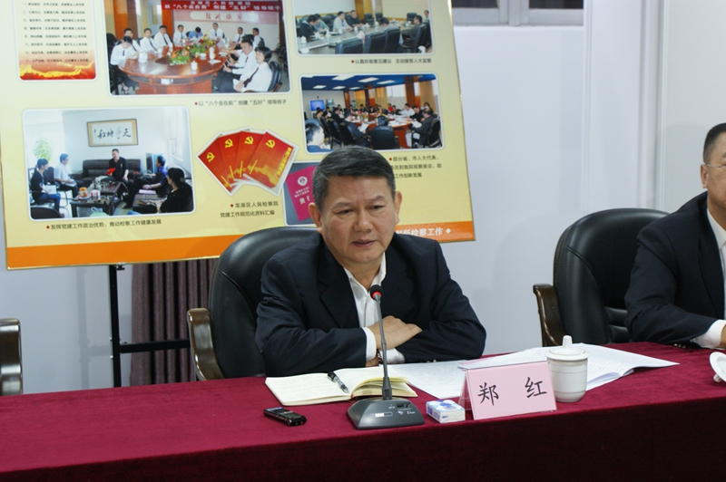 调研中,郑红检察长认真听取汕头市检察院以及龙湖区、南澳县检察院的工作汇报,对汕头各项检察工作特别是检察队伍建设和检察改革试点工作准备情况给予充分肯定。他指出,去年5月他曾经来过汕头调研,汕头检察工作以及党委政府、社会各界对检察工作的关心和支持给他留下了深刻印象。这次来感到汕头检察机关在市委和省院的领导下,各项工作又有了新的进步。一是业务工作推进力度大,亮点突出;二是四项司法改革试点工作基础工作扎实、推进思路清晰;三是涉法涉诉、检务公开等检察改革稳步推进,成效明显;四是队伍建设和基层基础建设有特色,打出了品牌。