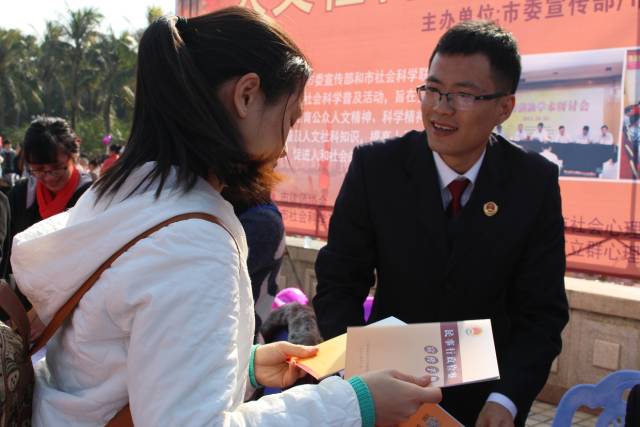 市检察官协会派出来自反贪、反渎、公诉、侦查监督、民事行政检察、控告申诉检察、法律政策研究室等部门的青年检察官来到活动现场,围绕广大市民群众关注的社会热点、难点问题,宣传法律规定,面对面为群众解疑释惑,促进提升群众的法律素养。同时,检察官们还向现场群众派送市检察院编印的民事行政检察、控告申诉检察等方面的宣传资料,受到现场群众的欢迎。