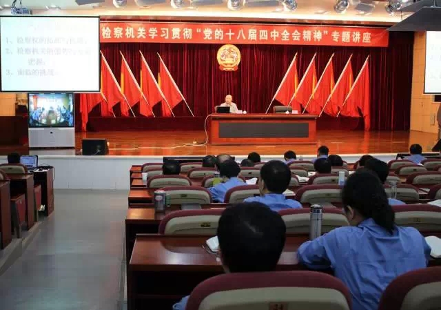 为进一步学习贯彻落实党的十八届四中全会精神,提高检察干警学法用法的水平,4月3日下午,市检察院举办学习党的十八届四中全会精神专题讲座,邀请市委宣讲团成员、汕头大学法学院教授、汕头大学地方政府发展研究所执行所长邓剑光为两级检察机关600余名检察干警授课。市检察院检察长赖德贵参加了讲座。