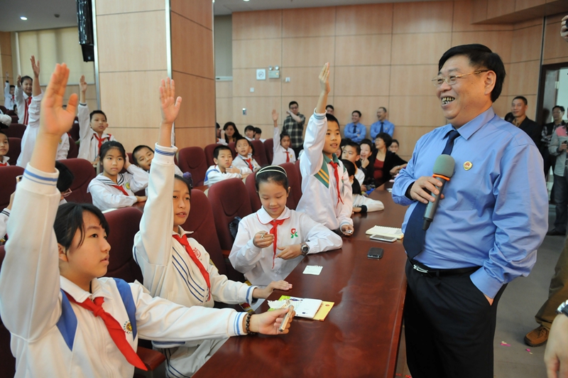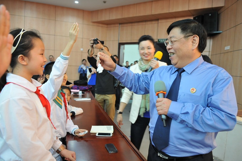赖德贵检察长回答完每一个问题,都向提问的小记者赠送了精美的小礼品,勉励他们用手中的笔为汕头的明天书写正义,当好“正义的小伙伴”。