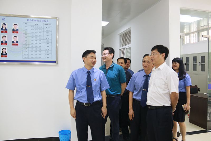 同时,张健代理检察长对基层检察工作提出了五点要求:一是牢固树立大局意识、责任意识,积极参与社会治理工作。要充分发挥检察职能,紧密围绕党委中心工作来谋划和部署,为大局服务,除了强调执法办案外,还结合辖区实际积极参与社会治理,特别要深入探索参与打击黑恶势力背后保护伞、查处基层干部违法违纪案件、整治软弱涣散基层党组织等专项工作的有力举措,保障基层和谐稳定。二是深入推进检察体制改革试点工作,让检察改革成为推动各项检察工作的新动力。要按照上级部署同步推进检察改革试点工作,既全面考虑、统筹安排,又要发挥基层首创精神,在机构整合、办案组组建等方面积极进行探索创新,实现“三个确保”的工作目标,即确保上级改革精神不折不扣落到实处、确保改革过程队伍稳定、确保各项检察工作健康平稳发展。三是严厉打击刑事犯罪,探索预防职务犯罪新方式。对于一些重大敏感案件,要加强与公安机关沟通联系,提前介入,同时要进一步加大查办和预防职务犯罪的力度,特别是预防职务犯罪的方式,不能停留在签订反腐倡廉协议、开展法治教育等方式上,要探索真正有效的规范各职能部门依法履职的格局,通过同步部署、同步介入、同步打击来实现同步预防。四是强化诉讼监督,服务基层维稳和社会矛盾化解工作。要重视群众诉求,畅通群众诉求表达渠道,维护群众合法权益,促进社会公平正义。对于属于涉法涉诉的诉求,要依程序解决,对于非涉法涉诉或需要协调其他单位解决的问题,要及时将材料移送相关部门,要在区委的领导下多方努力共同化解社会矛盾。五是重视队伍建设,着力提升队伍廉政意识。要充分认识班子团结、队伍稳定、整个队伍长远规划建设对于检察事业发展的重要性,在当前时期更要将队伍建设放在突出位置来抓,进一步落实党风廉政建设责任制,狠抓队伍廉政教育,提高检察队伍人员素质。