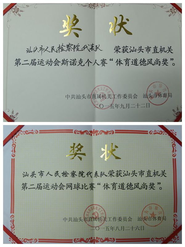 今年8至10月份,市检察院组织10人代表队参加了市直机关第二届运动会四个项目的比赛。赛前,运动员们发扬拼搏进取、奋勇争先的精神,采取集中训练和自由训练相结合的方式,充分利用休息时间加强体能和技能训练,做到工作、训练两不误。比赛中,参赛队员斗志昂扬、顽强拼搏,在参赛项目中团结奋进、突破超越,为我市检察机关争得了荣誉,充分展示了我市检察干警自强不息、团结拼搏,昂扬向上的精神风貌。市检察院参赛队员分别夺得斯诺克个人赛第一名,网球双打第四名和自由泳100米个人赛第七名的好成绩,市检察院代表队还在斯诺克、网球二个项目中荣获“体育道德风尚奖”。
