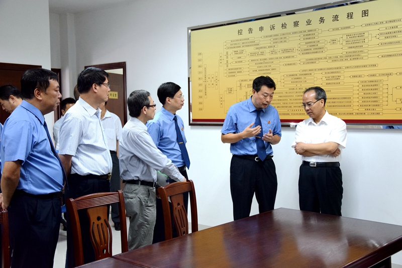 11月4日至5日,省委常委、政法委书记林少春带领调研组莅汕调研指导司法体制改革试点工作。5日上午,调研组一行深入汕头市检察院,听取我市两级试点检察院工作汇报,并与检察干警代表面对面座谈交流,直接听取改革意见建议。省委政法委专职副书记、秘书长陈少波,省高级法院党组副书记、副院长霍敏,省检察院副检察长黄武参加调研,市委常委、政法委书记谢泽生,市检察院党组书记、代理检察长张健陪同调研。