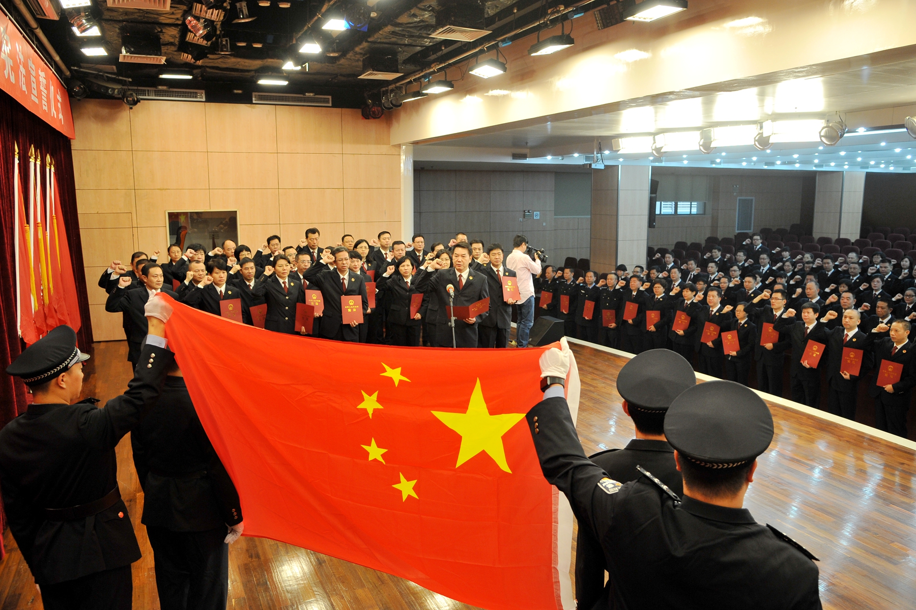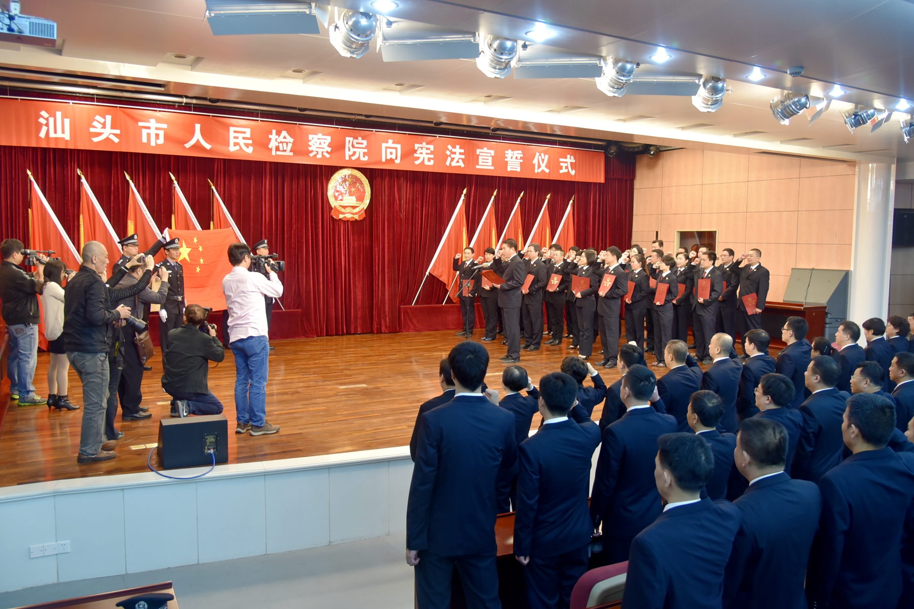 宣誓活动在集体合唱国歌后开始。“我宣誓:忠于中华人民共和国宪法,维护宪法权威,履行法定职责,忠于祖国,忠于人民,恪尽职守、廉洁奉公,接受人民监督,为建设富强、民主、文明、和谐的社会主义国家努力奋斗!”全体检察人员在院领导的带领下,在南方日报、汕头电视台、汕头日报等新闻媒体记者的共同见证下,面对国旗,铿锵有力地宣读上述70个字宪法誓词,郑重承诺对国家的忠诚、对人民的热爱、对法律的尊崇和对职责的坚守。