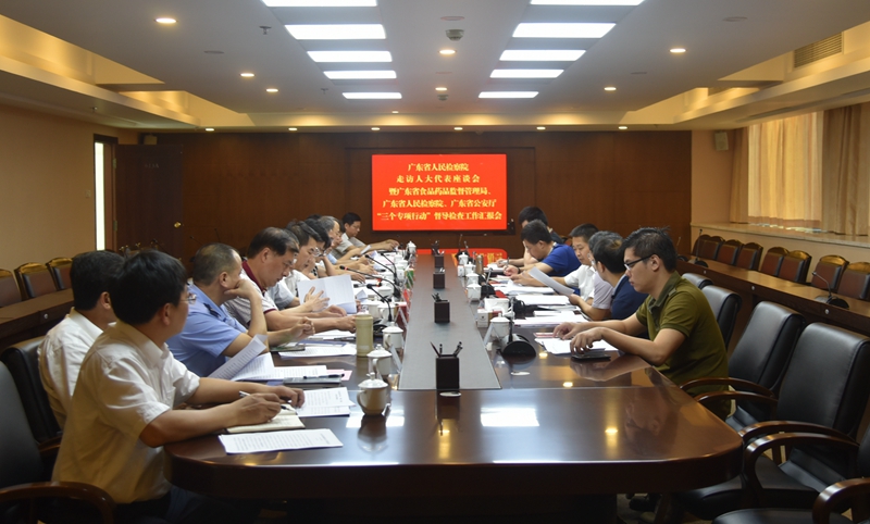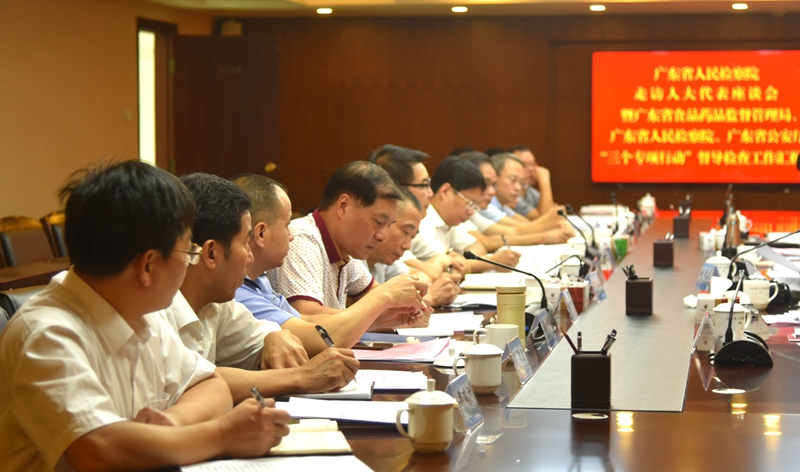 7月20日至21日,省检察院副检察长李小东带领省联合督导组莅汕督导检查“三个专项行动”开展情况,并走访在汕的全国、省人大代表。在21日上午召开的人大代表座谈会暨督导检查汇报会上,李小东副检察长一行听取了市检察院、市食品药品监督管理局、市公安局关于开展打击药品违法犯罪“雷霆行动”、打击食品非法添加违法犯罪“清源行动”和打击保健食品非法添加违法行为“蓝剑行动”的工作汇报,同时向人大代表征求意见建议。省公安厅、省食品药品监督管理局有关领导参加督导活动,市检察院党组书记、检察长张健,党组副书记、副检察长吴少荣,市公安局副局长方志勇,市食品药品监管局副局长郑则儒参加会议。