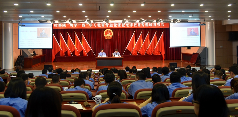 为扎实深入推进“两学一做”学习教育和2016年纪律教育学习月活动,7月28日上午,市检察院党组书记、检察长张健以《在“学”上用真功、在“做”上见真章,以学习教育实际成效助推检察工作创新发展》为题,结合学习党章党规、习近平总书记系列重要讲话以及“四讲四有”合格党员标准,为全院干警、职工上“两学一做”专题党课并作纪律教育专题辅导报告。张健检察长强调,全体党员干警要时刻铭记党员身份,守住纪律和规矩底线,带头在“学”中自我净化,在“做”中自我提升,进一步提振精气神、展现新作为,为汕头加快振兴发展、营造国际化法治化营商环境作出新的更大贡献。