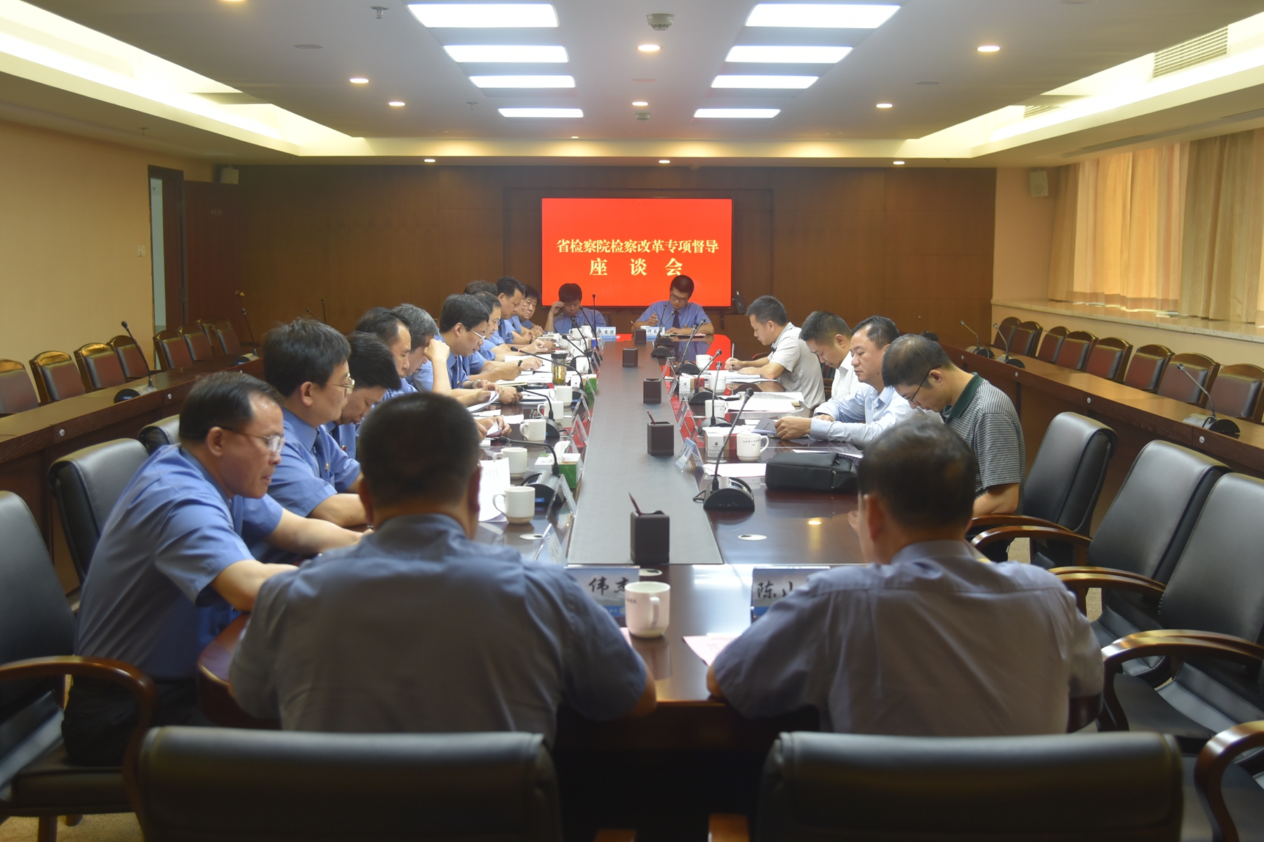 10月20日下午,省检察院党组成员、副检察长李小东带队莅汕开展检察改革情况专项督导工作,充分肯定我市检察机关推进司法体制改革和检察改革所取得的成效,要求汕头两级检察院继续蹄急步稳、扎实推进各项改革工作,为全省提供更多可复制可推广的改革经验。市检察院党组书记、检察长张健,党组副书记、副检察长杨宏强,党组成员、副检察长林列坤,党组成员、政治处主任陈海波和澄海区检察院主要领导、市检察院相关部门负责人参加督导座谈会。