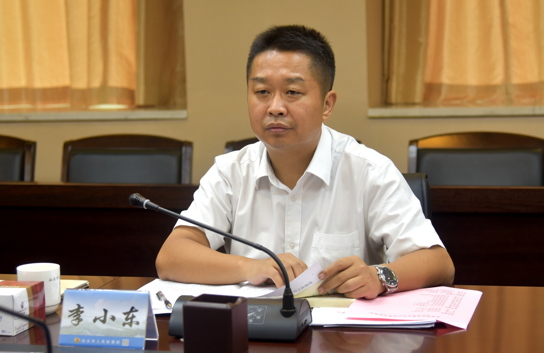 10月21日上午,李小东副检察长还带队深入澄海区检察院派驻东里镇检察室开展实地调研,详细察看了检察室办公场所和工作台帐,并认真听取派驻工作情况汇报。他要求我市检察机关要充分发挥派驻检察室的平台作用,加强对公安派出所的刑事侦查活动监督,特别要完善派驻检察室和本院侦监部门的内部协作机制,强化对公安派出所的捕后监督和刑事拘留强制措施的监督,提升监督工作的全面性和实效性。