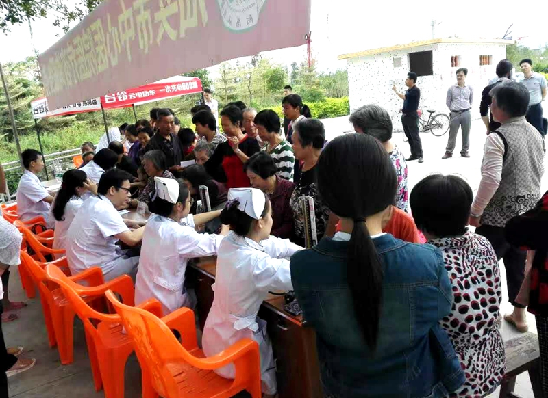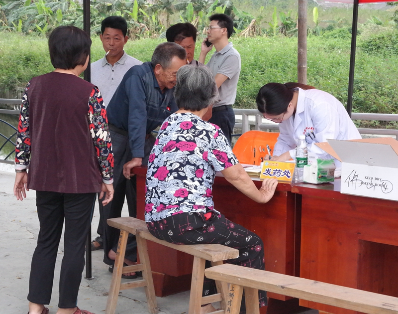 来自汕头市中心医院的12名专家医生分别为村民们开展内科、中医、儿科、眼科、放射科、心理咨询和测量血压等诊疗服务,现场还免费发放了药品。
