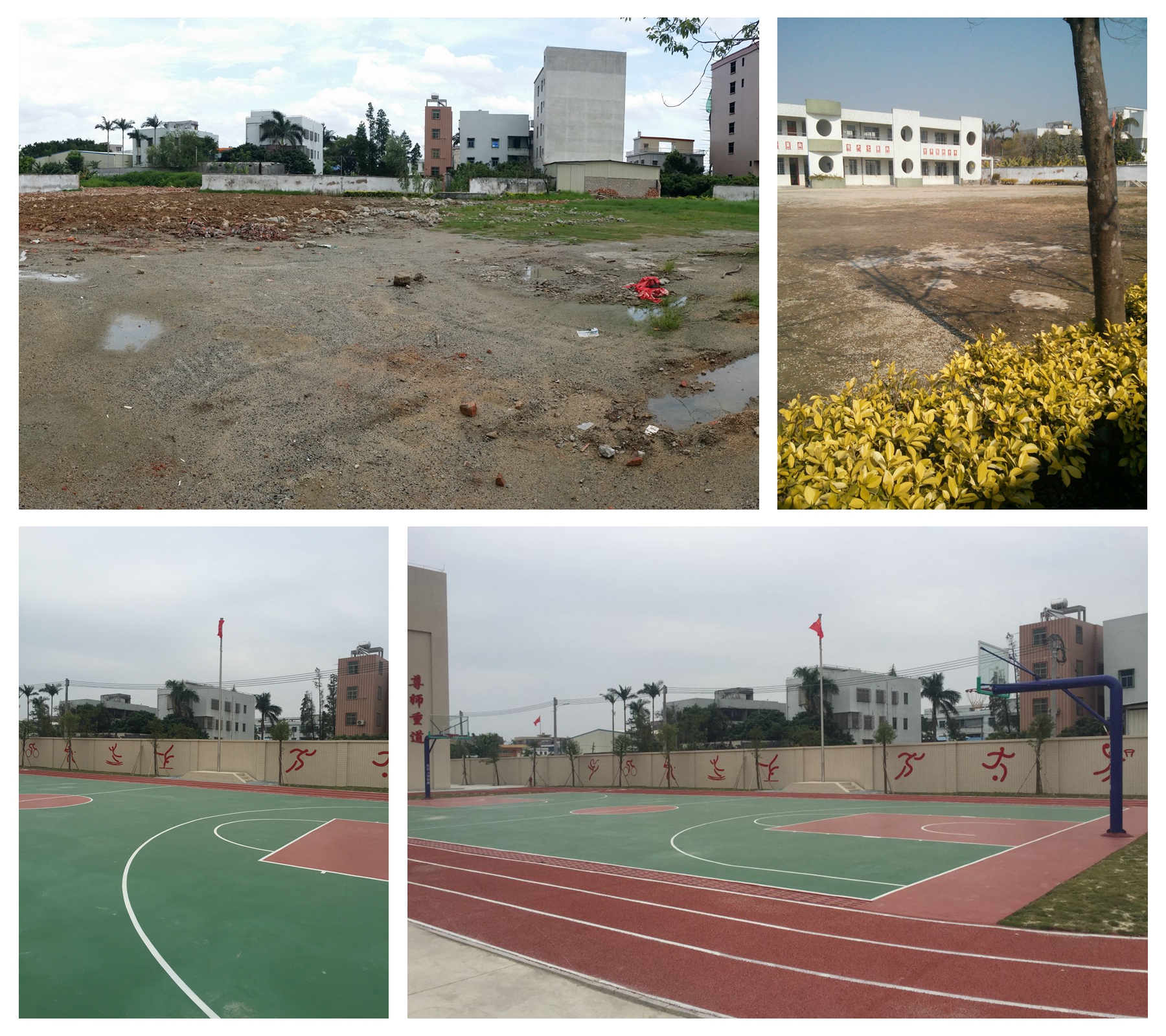 原来不是烟尘弥漫就是积水横流的沙土操场,已经变成一个时尚漂亮、功能齐全的运动乐园。