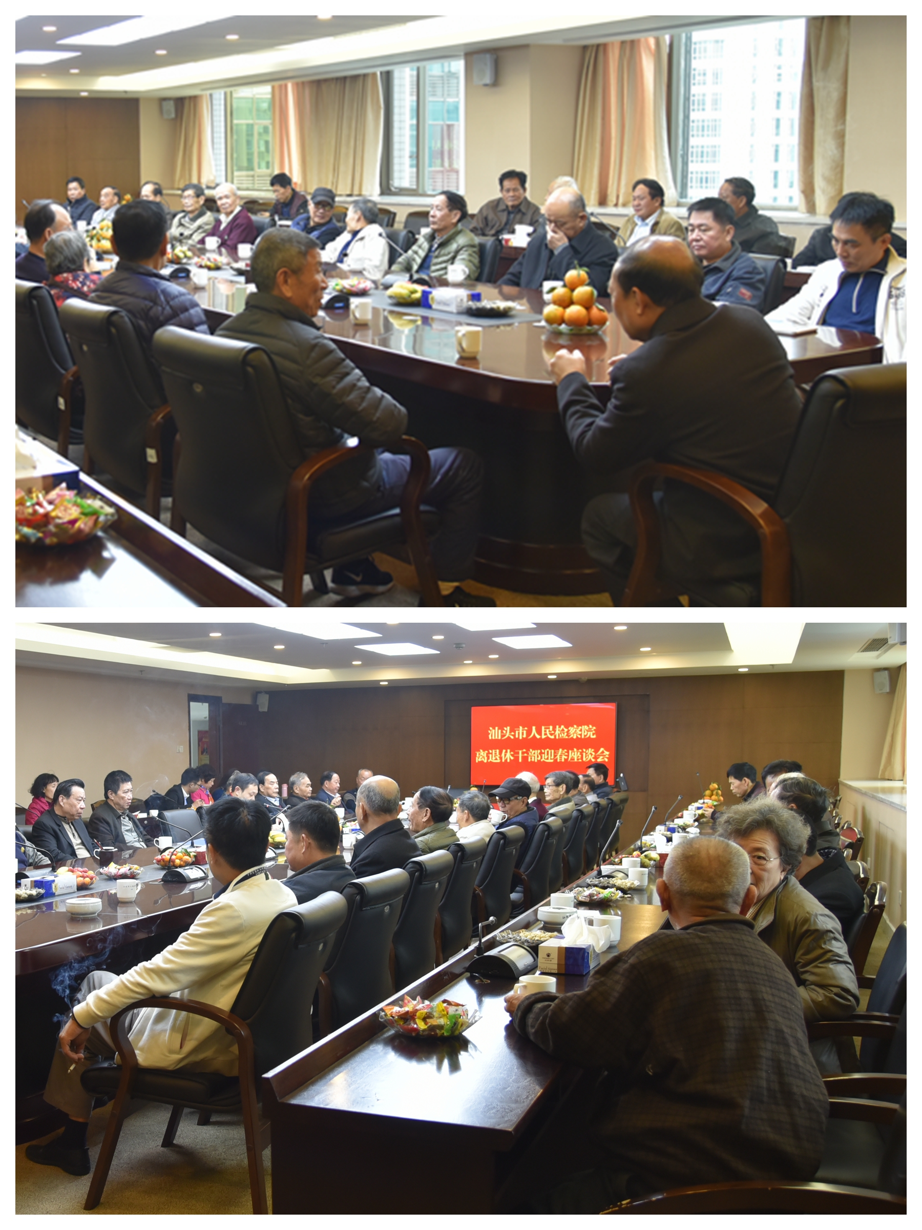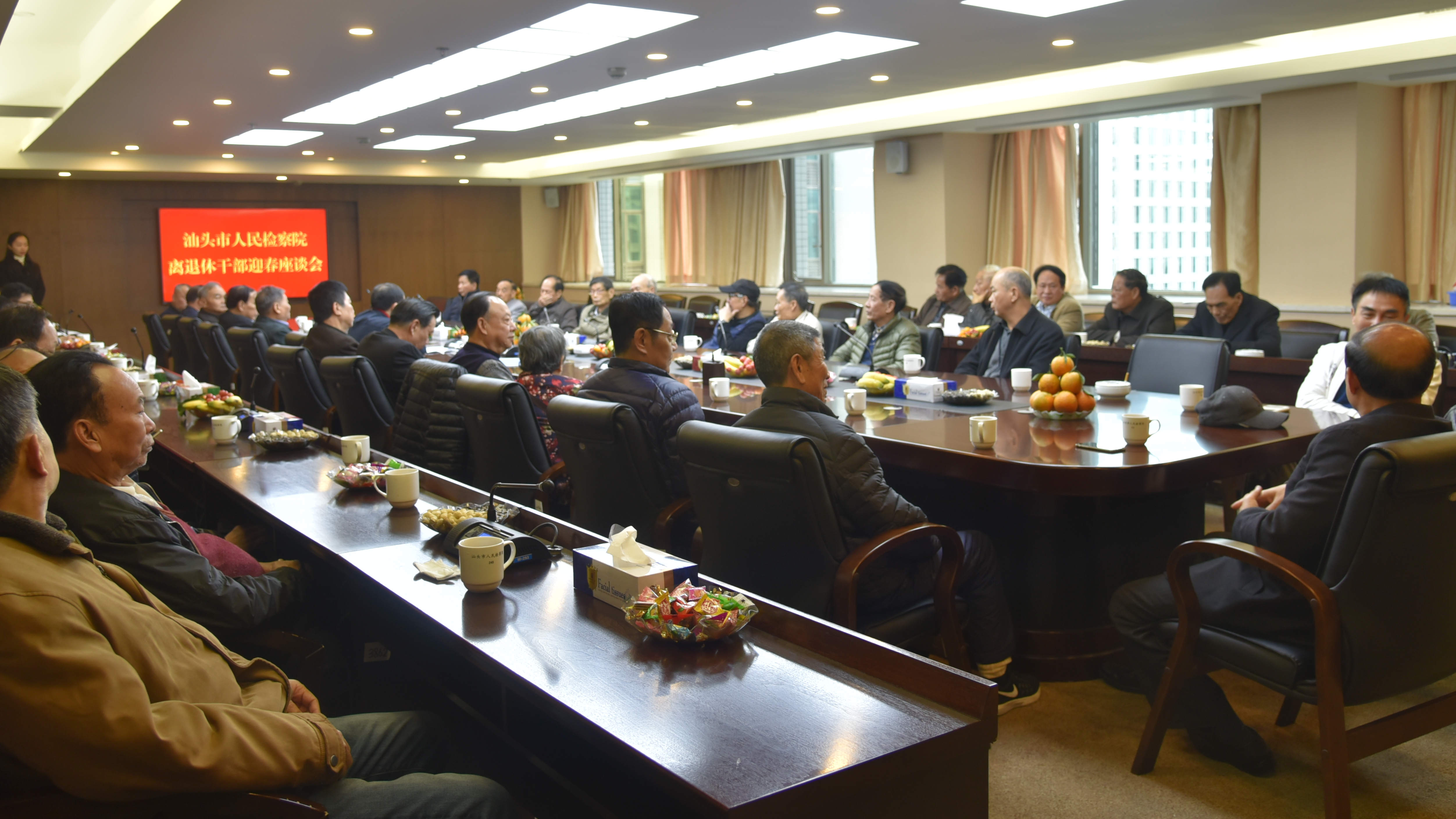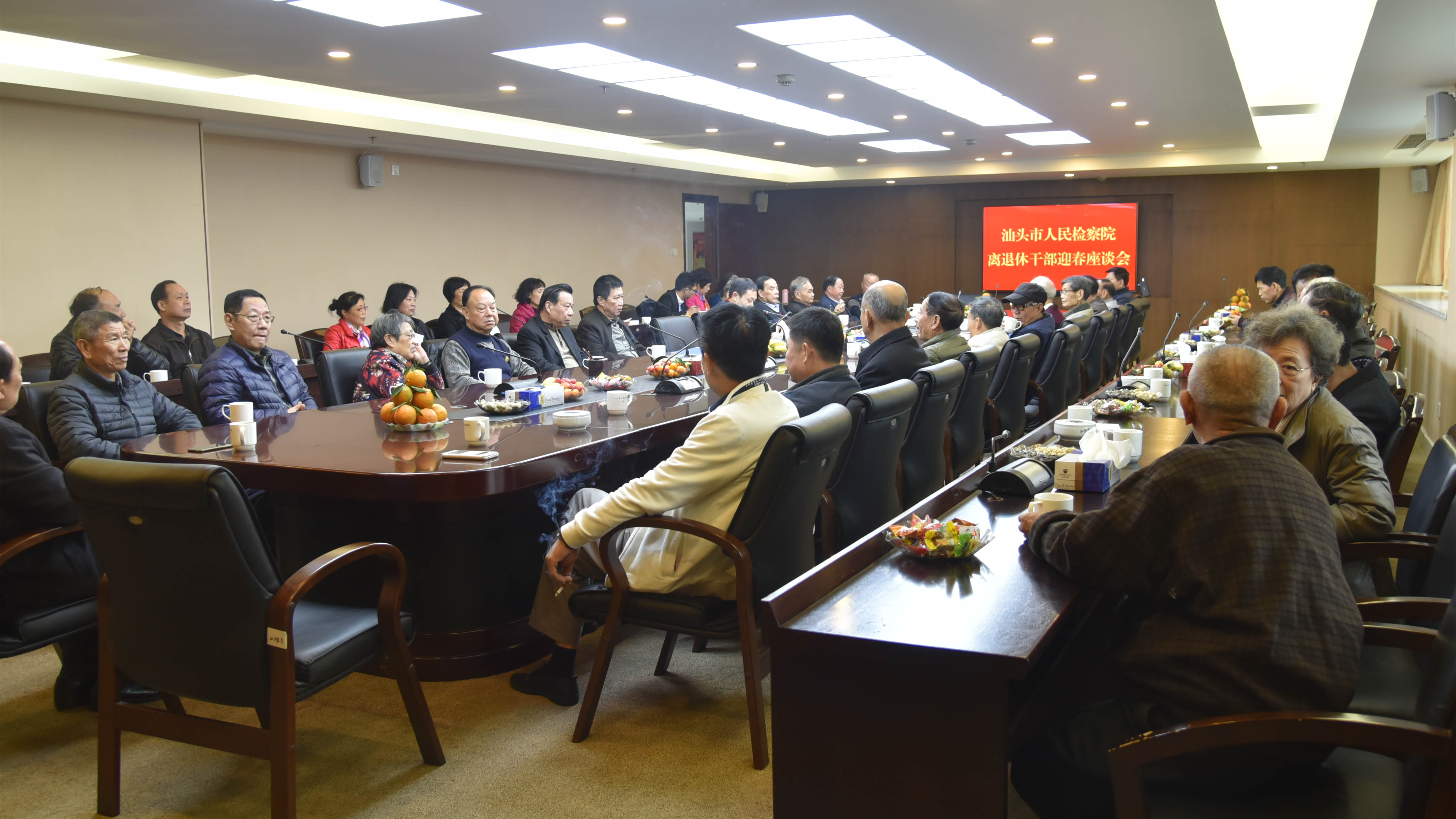 1月24日上午,市检察院召开离退休老干部迎春座谈会,听取离退休老干部对检察工作的意见和建议,40多位离退休老干部出席座谈会,大家欢聚一堂、畅抒情谊,共迎新春佳节。市检察院党组成员、政治处主任陈海波参加座谈会。