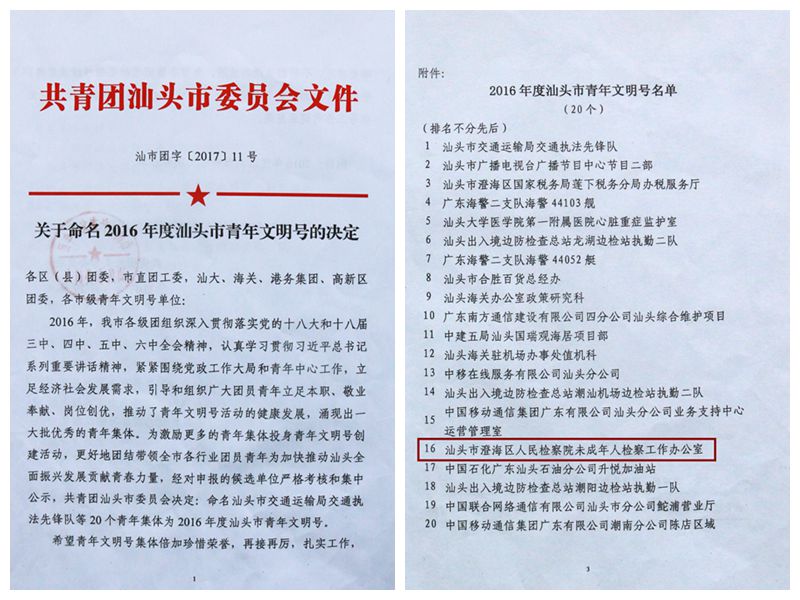 汕头市青年文明号: