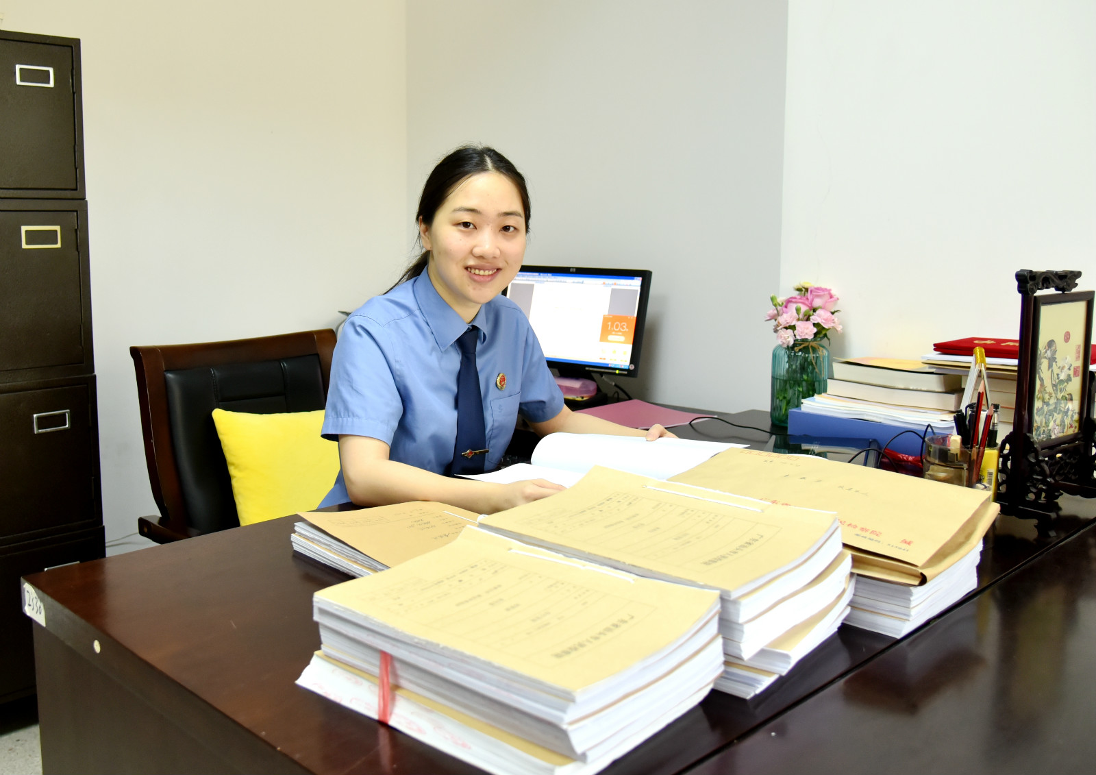 李琳同志2013年参加工作,先后在市检察院法律政策研究室、公诉科工作。三年多的工作历练,铸就了她坚韧沉稳的做事风格和奋勇争先的工作作风,充分展现出青年检察官的青春先锋风采。