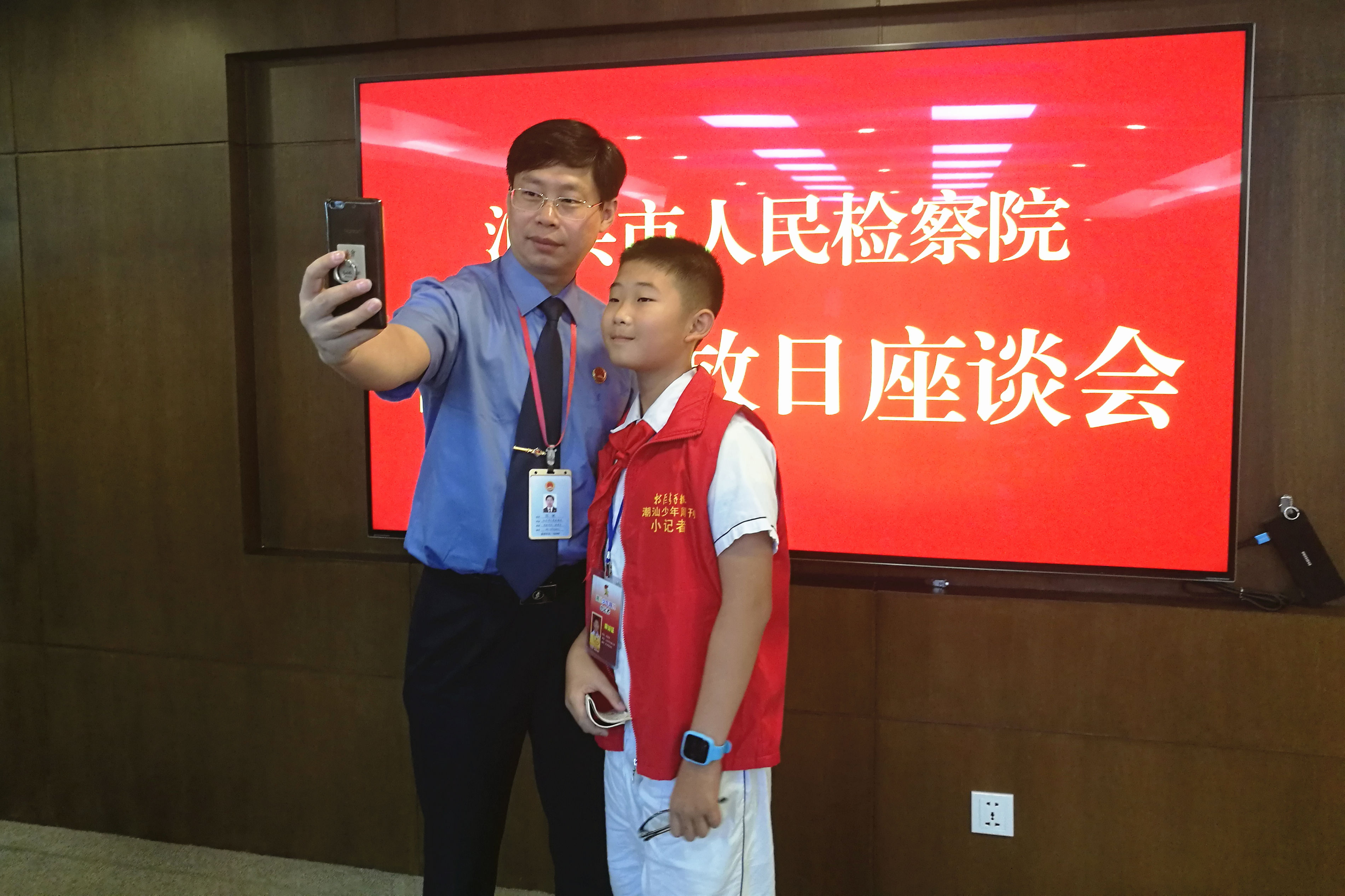 “检察院的职能主要是什么?检察工作哪些与我们学生有关呢?”“您如何看待校园欺凌事件?遭遇校园欺凌我们该怎么办?”……小记者们明显有备而来,将问题一个个抛给检察长伯伯。张健检察长一一认真详细地给予回答,并应小记者的要求合影留念。