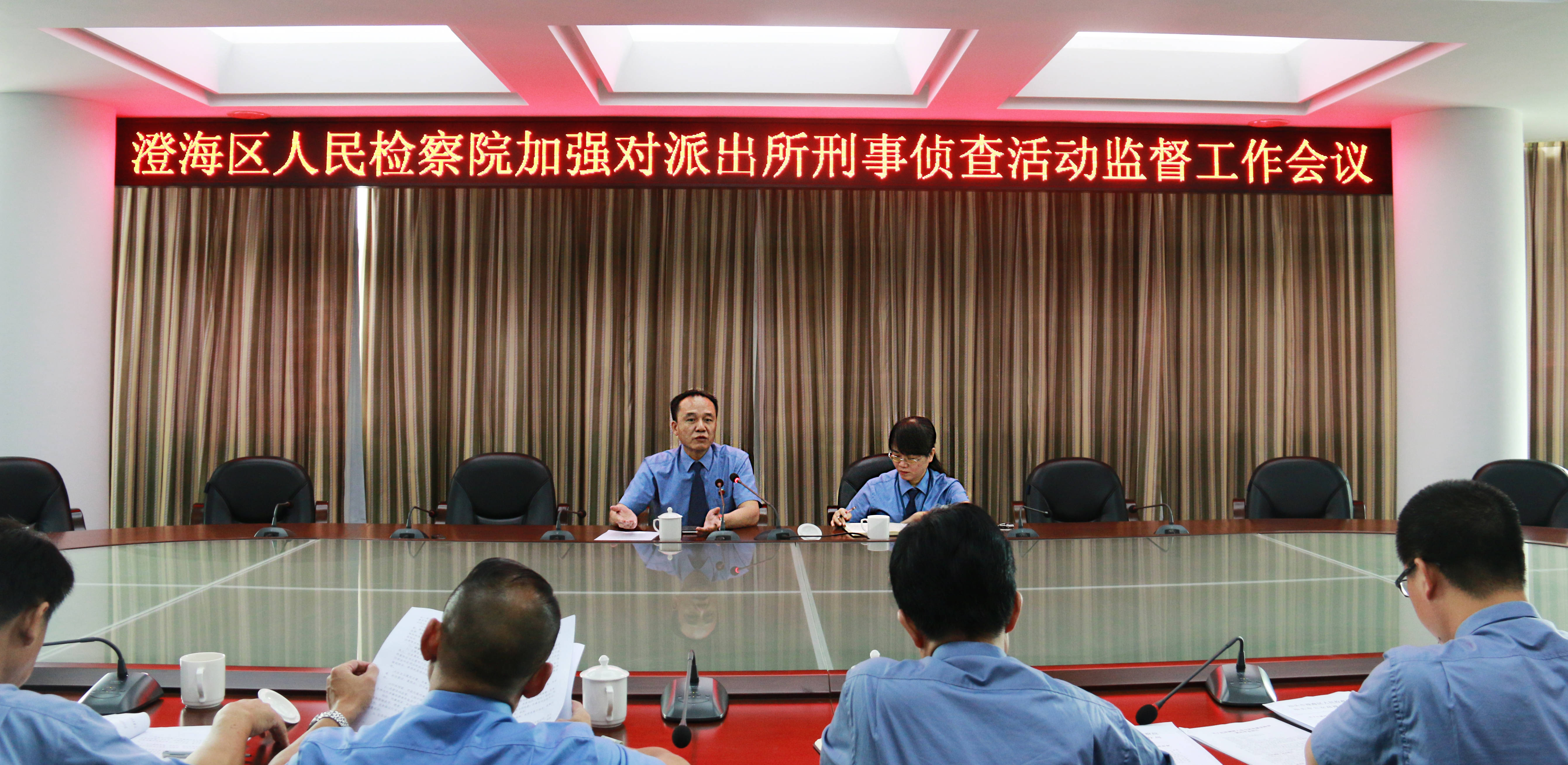近日,澄海区检察院召开会议部署加强对公安派出所刑事侦查活动监督工作,该院检察长陈武松,副检察长余媛南以及侦监、刑事执行、派驻莲下镇检察室、派驻东里镇检察室干警参加会议。