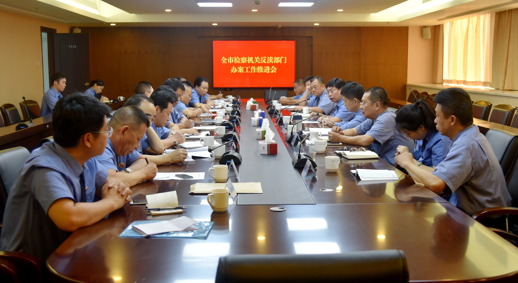 近日,市检察院召开全市检察机关反渎部门办案工作推进会,市检察院检察长张健出席会议并作讲话,党组成员、反渎局局长王庆忠主持会议,全市各基层检察院分管副检察长、反渎局局长和市检察院反渎局入额检察官参加会议。