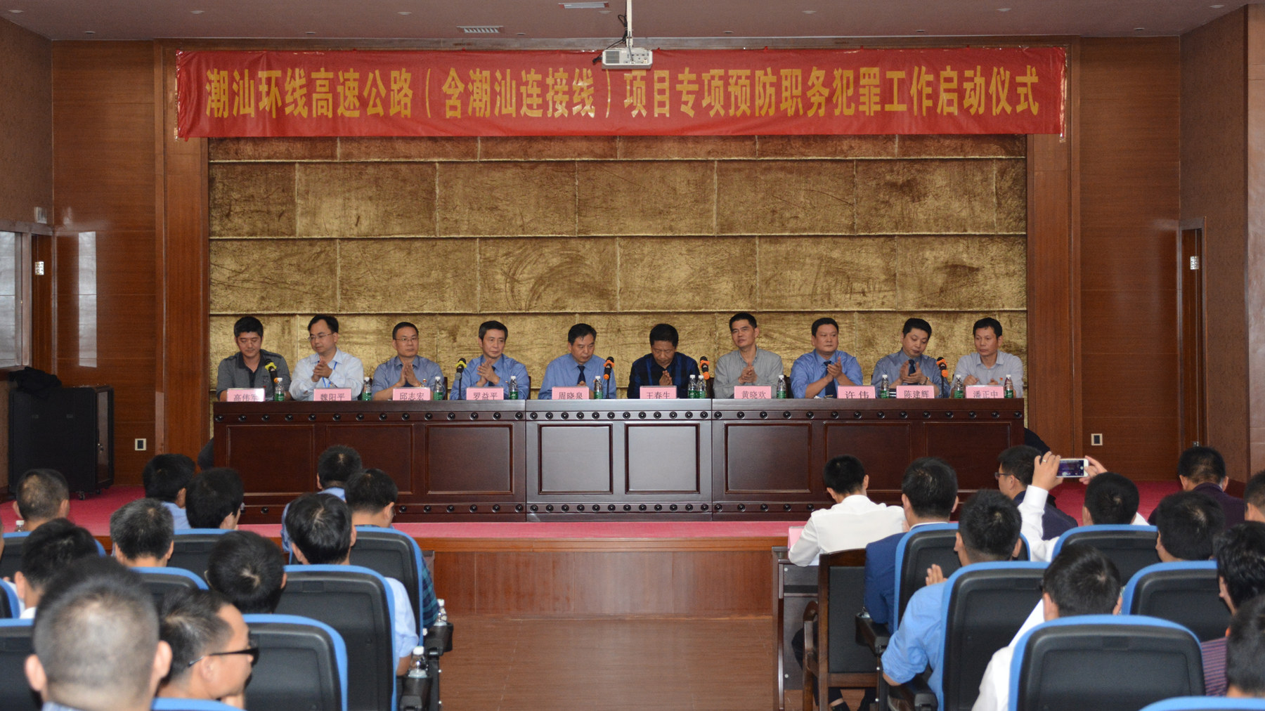 根据省检察院部署安排,近日,汕头市、潮州市、揭阳市检察院与广东省路桥公司在广东潮汕环线高速公路有限公司举行潮汕环线高速公路(含潮汕连接线)项目专项预防职务犯罪工作启动仪式。省检察院高级检察官周晓泉,汕头市检察院党组成员、副检察长罗益平,广东省路桥公司党委书记、董事长王春生,汕头市交通运输局局长黄晓欢出席启动仪式。汕头市、潮州市、揭阳市检察院和省路桥公司以及潮汕环线高速公路施工、监理、检测单位等共100多名代表参加启动仪式。