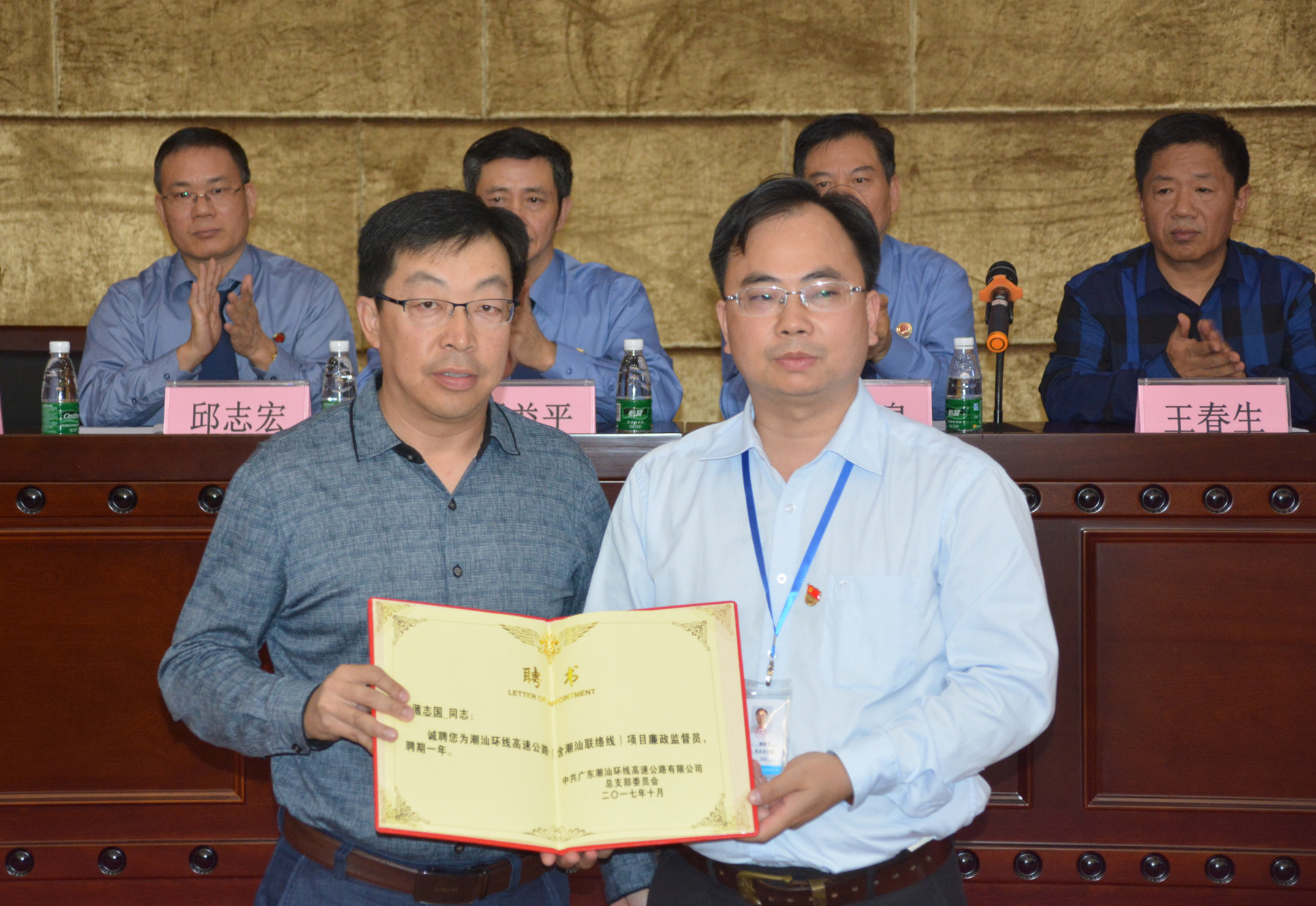 启动仪式上,汕头市检察院介绍了《潮汕环线项目专项预防职务犯罪工作实施方案》,业主、监理、施工单位分别作表态发言,随后,汕头市、潮州市、揭阳市检察院与省路桥公司签订《潮汕环线项目专项预防职务犯罪工作实施方案》。施工单位、监理单位、检测单位、设计单位分别签署廉洁承诺书,同时颁发潮汕环线项目廉政监督员聘书。