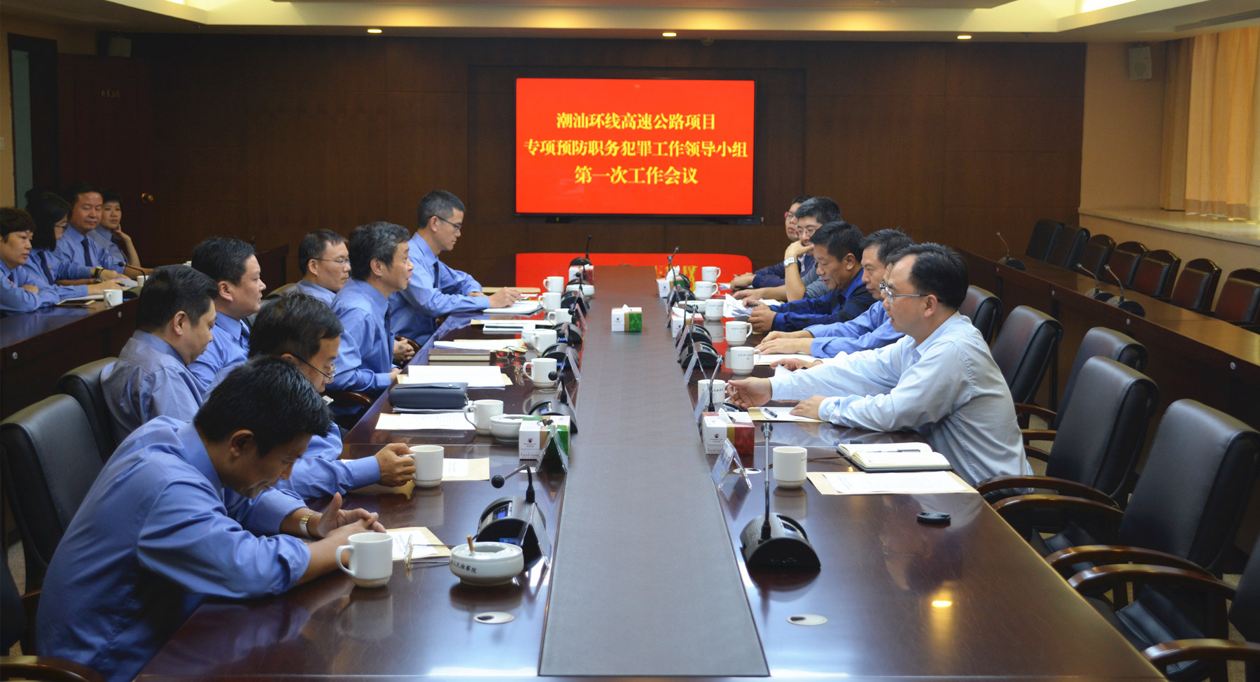 启动仪式结束后,潮汕环线高速公路项目专项预防职务犯罪工作领导小组在汕头市检察院召开了第一次工作会议,领导小组各成员单位围绕实施方案研究讨论了接下来项目建设过程中的专项预防工作。