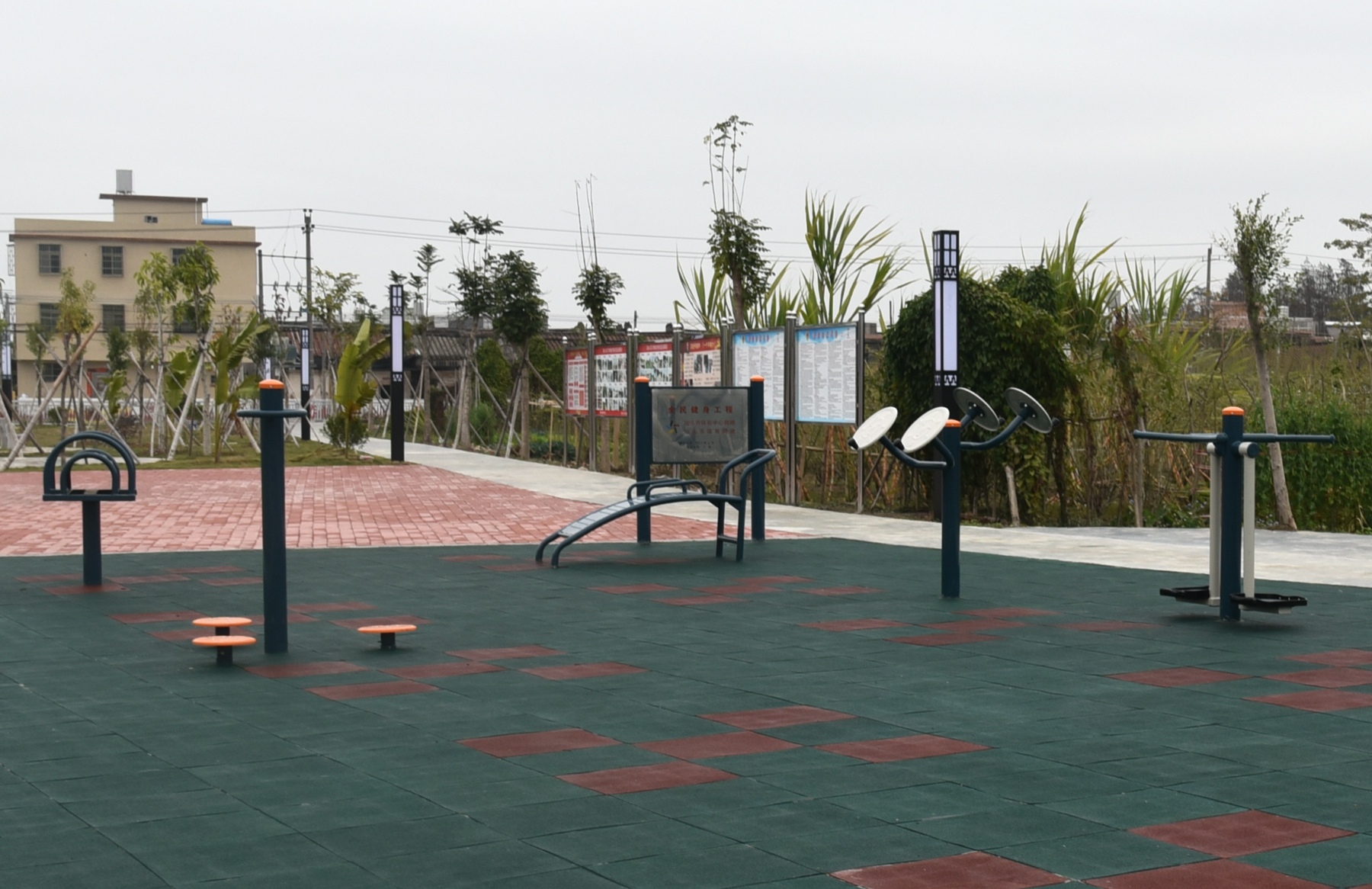 看!广场里还配备了健身设施呢!