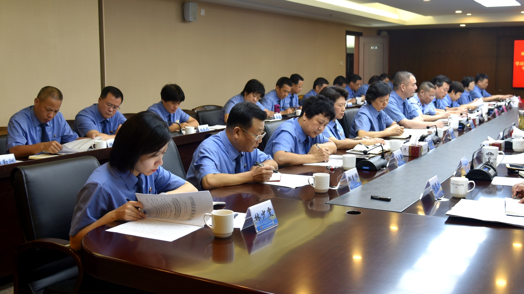 7月16日上午,市检察院召开党组理论学习中心组学习(扩大)会,紧密结合汕头市情和特区检察工作实际,深入学习贯彻习近平新时代中国特色社会主义政法思想。会议要求全市检察机关要把学习贯彻习近平新时代中国特色社会主义政法思想作为重要的政治任务,闻鸡起舞、日夜兼程、夙夜在公,持续激荡特区检察院再出发的豪情壮志,以新担当新作为开创特区检察工作新局面,为把汕头建设成为名副其实的省域副中心城市,打造成内秀外名的活力特区、和美侨乡、粤东明珠作出新的更大贡献。市检察院党组书记、检察长张健主持会议并讲话。