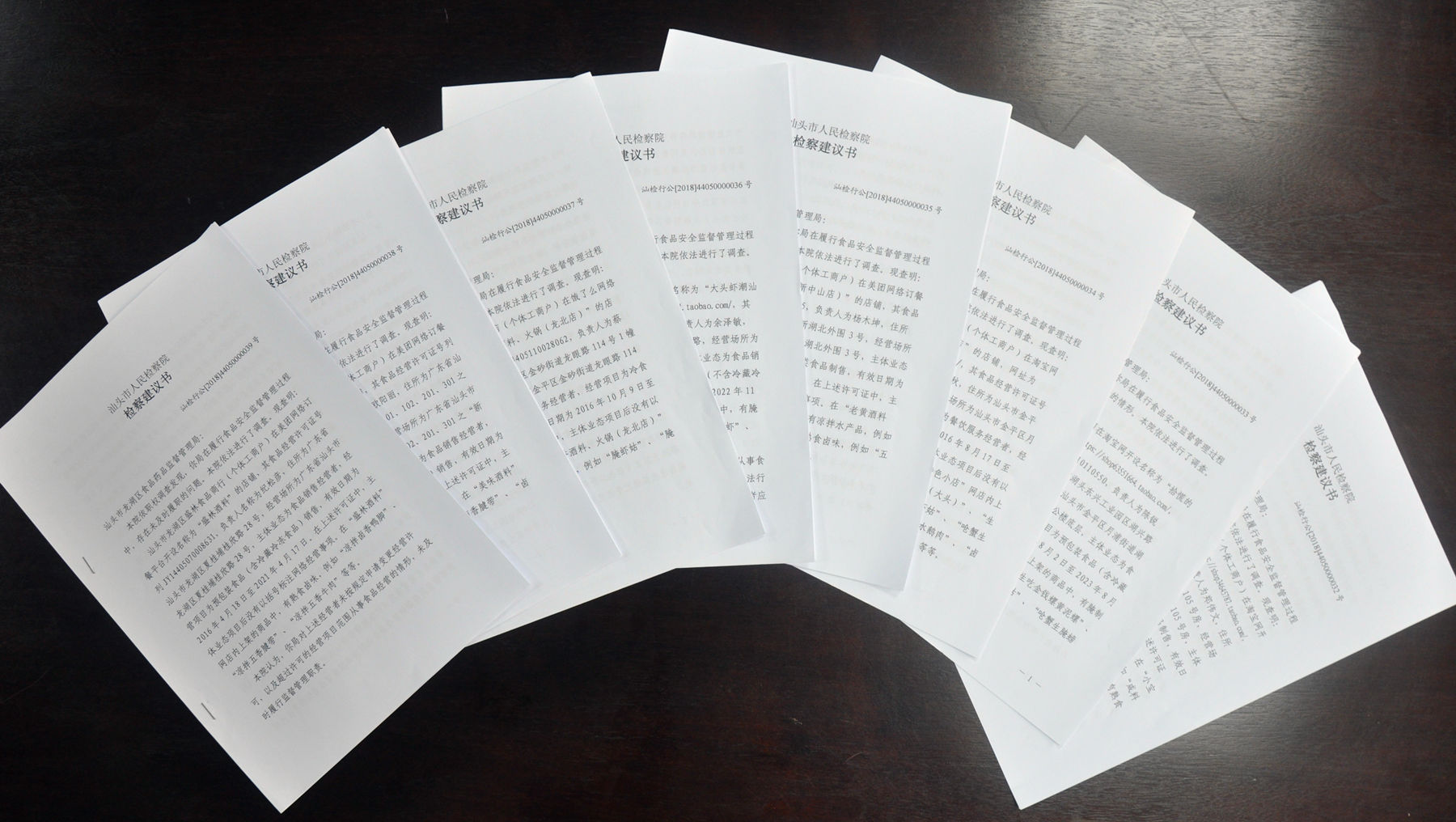 经依法立案调查,市检察院于9月25日向相关辖区的食药监局发出诉前检察建议共8份,建议对上述违法行为依法予以查处,并将检察建议书抄送市食药监局。同时积极探索诉前检察建议发挥作用的方式方法,创新检察建议送达方式,主动上门到市食药监局并约请相关负责人召开座谈会,现场送达检察建议,并就网络食品管理监督中存在的问题进行分析交流。