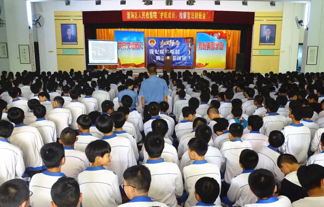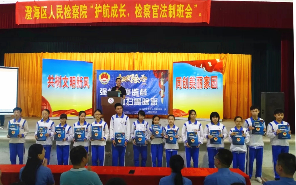 为深入推进扫黑除恶专项斗争,进一步加大专项斗争宣传力度,近日,澄海区检察院在辖区隆都镇隆侨中学正式启用青少年法治教育服务平台,同时组织干警走进隆侨中学,为该校650多名学生开展一场主题为“扫黑恶、净环境,共建文明校园”的法治课活动。
