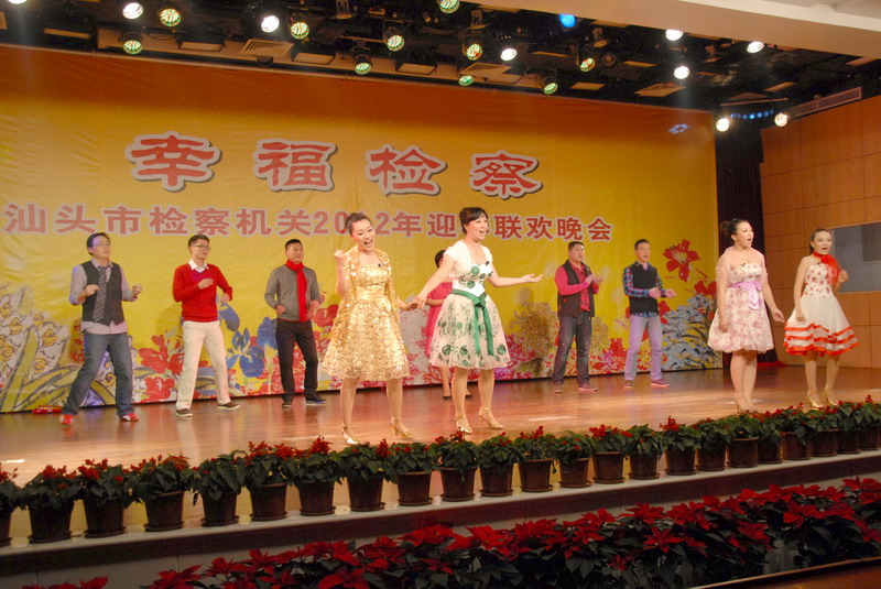 春节团拜会后,全市检察机关“幸福检察”2012年迎春联欢晚会在市院三楼会议中心热烈开场。我市两级检察院干警精心组织、自编自导,通过表演唱、合唱、哑剧、相声、配乐诗朗诵、舞蹈、小品等风格各异的艺术形式演绎各自的“拿手好戏”。干警们用美妙的歌声表达对党和人民的无限忠诚,用深情的朗诵倾诉对检察事业的无限热爱,用诙谐幽默的相声抒发执法为民的炽热情怀,用发人深省的小品诠释对公平正义的执着追求,展现出汕头检察人忠诚为民的精神、大爱无私的气质和公正廉洁的风骨。整台晚会主题鲜明,精彩纷呈,高潮迭起,充分体现了我市检察文化建设的丰硕成果,得到了市领导和嘉宾们的高度评价。