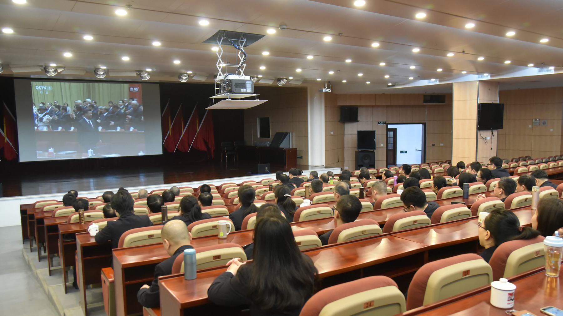 12月18日上午10时,市检察院组织集中收听收看庆祝改革开放40周年大会直播。市检察院党组书记、检察长张健在市委会议中心收听收看直播,市检察院在家班子成员和全体检察人员在市检察院三楼会议厅收听收看。