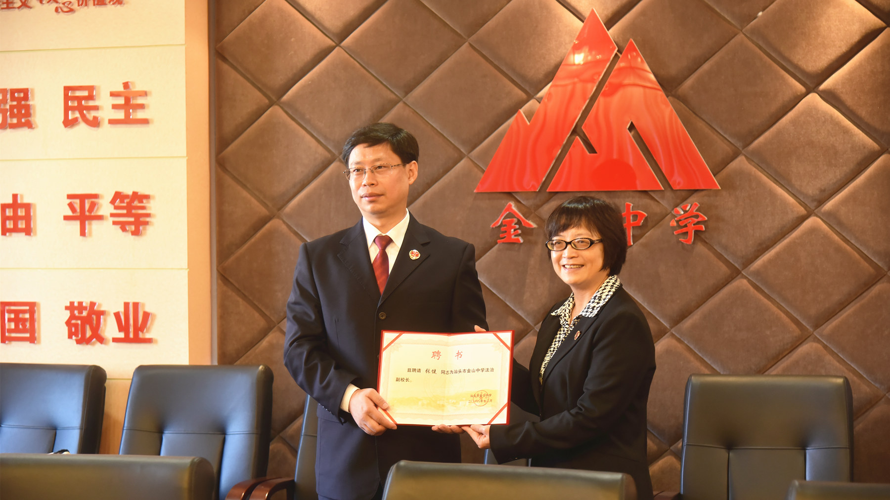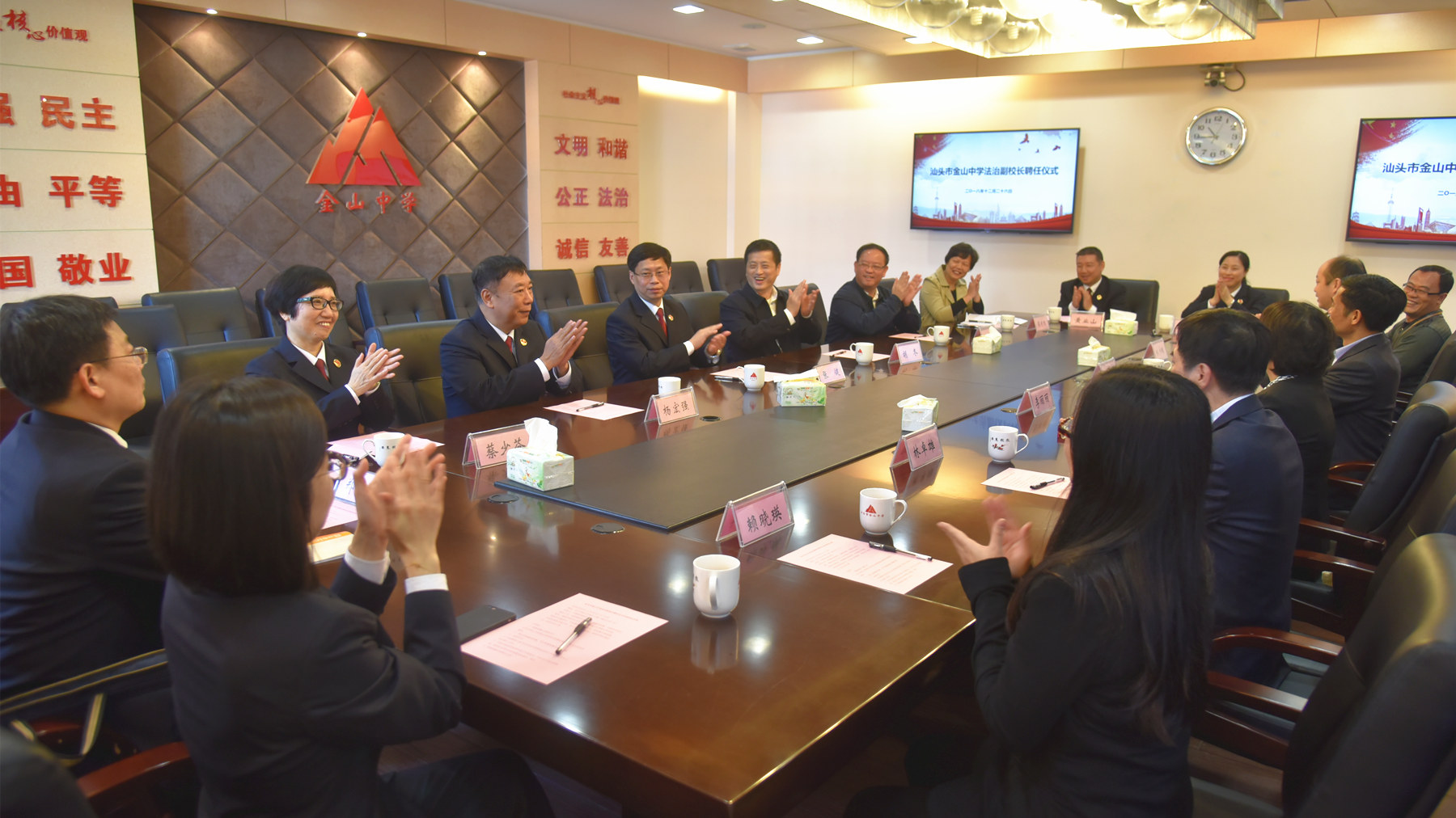 12月26日上午,汕头市人民检察院党组书记、检察长张健来到汕头市金山中学,受聘担任该校法治副校长,实地调研参观校园并与该校师生代表座谈交流。市检察院党组副书记、副检察长杨宏强,检委会专职委员蔡少芬,市教育局局长胡冬、副局长陈亦斌,全国人大代表、汕头市金山中学校长李丽丽参加活动。