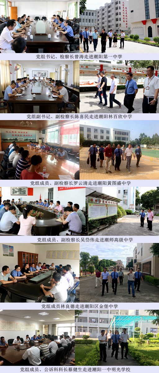 开学之际,该院领导以法治副校长身份走进潮阳第一中学、潮阳林百欣中学等学校,与学校领导班子召开座谈会,传达高检院“一号检察建议”等文件精神,提出了加强校园安全监控、严把教职工“入口关”、强化师德师风建设、引导家长关注防性侵话题、提高学生法治意识等切实可行的措施。活动中,“法治副校长”们还进行了实地走访,进一步了解宿舍安全管理、校园法治建设、校园周边环境安全等情况,排查安全隐患,帮助提高校园安全防范水平。