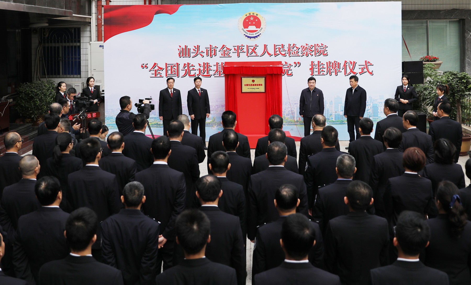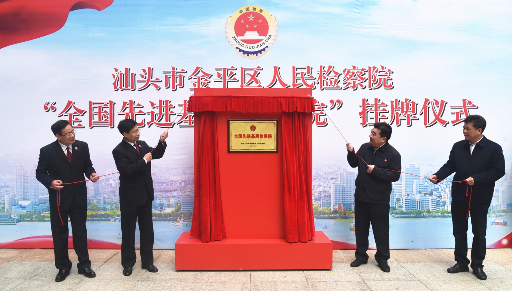 12月15日上午,金平区检察院举行“全国先进基层检察院”挂牌仪式。省检察院党组成员、副检察长张健,市委常委、组织部部长熊松,市检察院党组书记、代理检察长彭章波,金平区委书记林锐武共同为金平区检察院“全国先进基层检察院”牌匾挂牌。省检察院、市检察院、金平区委有关领导以及金平区检察院全体干警参加挂牌仪式。