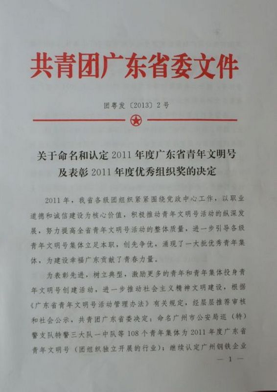 近日,市检察院案件管理科被共青团广东省委员会授予“广东省青年文明号”荣誉称号。这是该科继获得 “汕头市青年文明号”、“汕头市文明单位”后的又一荣誉。